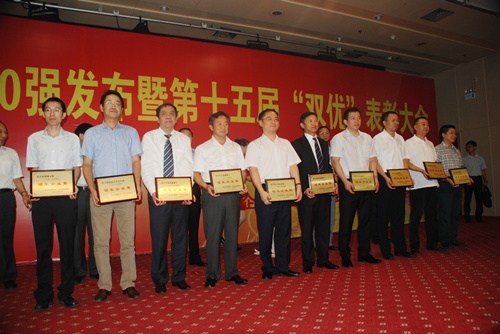 上圖為集團(tuán)公司總經(jīng)理龔衛(wèi)國(guó)(前排左五)上臺(tái)領(lǐng)獎(jiǎng)