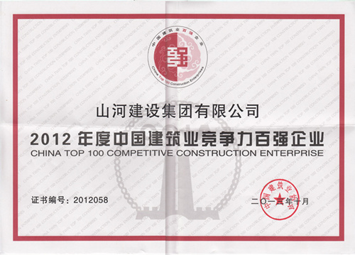 在日前召開的2012年度中國建筑業(yè)雙百強(qiáng)企業(yè)發(fā)布會上,山河建設(shè)集團(tuán)有限公司憑借較強(qiáng)的市場競爭力、先進(jìn)的企業(yè)管理水平、良好的社會品牌,再次獲得“中國建筑業(yè)競爭力百強(qiáng)企業(yè)”稱號。