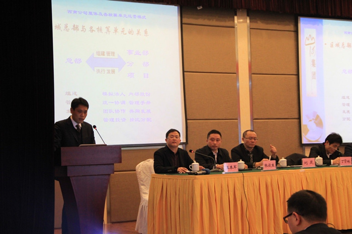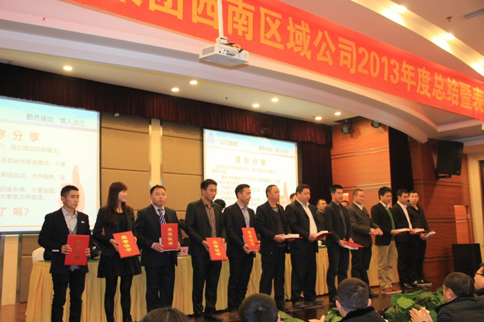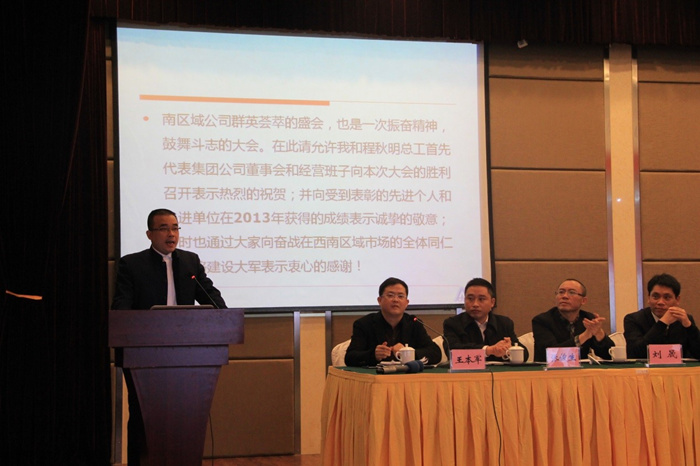 西南區(qū)域公司總經(jīng)理丁賢林在會(huì)議上以“理清思路、升級(jí)管理、品牌共建、成果共享”為主題的報(bào)告,他首先感謝全體員工一年來(lái)的辛勤努力工作,并充分肯定了公司員工一年來(lái)各項(xiàng)工作所取得的成績(jī)。并對(duì)西南公司整體及各核算單元運(yùn)營(yíng)模式,2013年西南公司總體運(yùn)營(yíng)效果及分析,以及2014年西南區(qū)域公司運(yùn)營(yíng)目標(biāo)及措施做了具體報(bào)告。