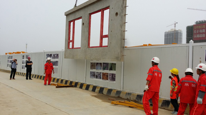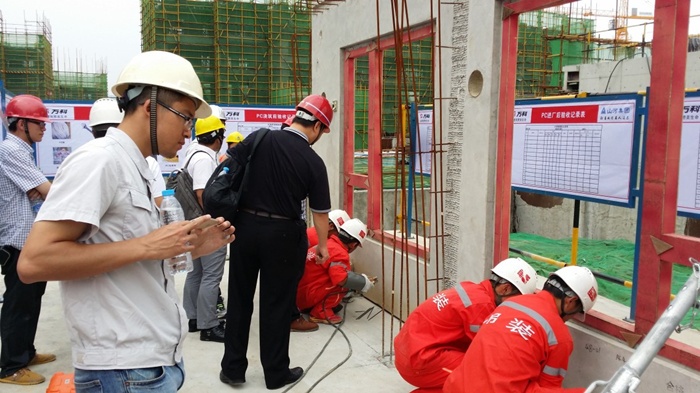 通過(guò)項(xiàng)目部數(shù)月的籌劃,南昌萬(wàn)科海上傳奇項(xiàng)目PC實(shí)驗(yàn)樓于2014年5月26日正式開(kāi)始吊裝。吊裝前我項(xiàng)目部專業(yè)吊裝人員分別將吊具、調(diào)節(jié)腳碼、斜支撐、鋼絲繩、攬風(fēng)繩、鋼扁擔(dān)等安裝輔助工具準(zhǔn)備就位,依據(jù)技術(shù)交底內(nèi)容、項(xiàng)目部的統(tǒng)籌安排及指揮,按照制定的PC吊裝時(shí)間行程,將實(shí)驗(yàn)樓的PC構(gòu)件一次順利吊裝成功并調(diào)試合格。