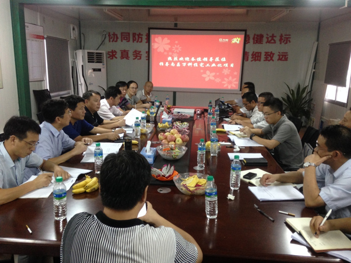 南昌萬科項(xiàng)目部和集團(tuán)項(xiàng)目部的相關(guān)人員,分別向?qū)<以u(píng)審團(tuán)介紹了南昌萬科海上傳奇工業(yè)化裝配式pc樓的工程概況、工藝流程及節(jié)點(diǎn)施工控制方案,同時(shí)專家及各單位代表分別闡述咨詢了各自的觀點(diǎn)及疑問。為進(jìn)一步完善工業(yè)化裝配式施工工藝,評(píng)審團(tuán)及與會(huì)領(lǐng)導(dǎo)還深入施工現(xiàn)場(chǎng)進(jìn)行指導(dǎo)與探討。
