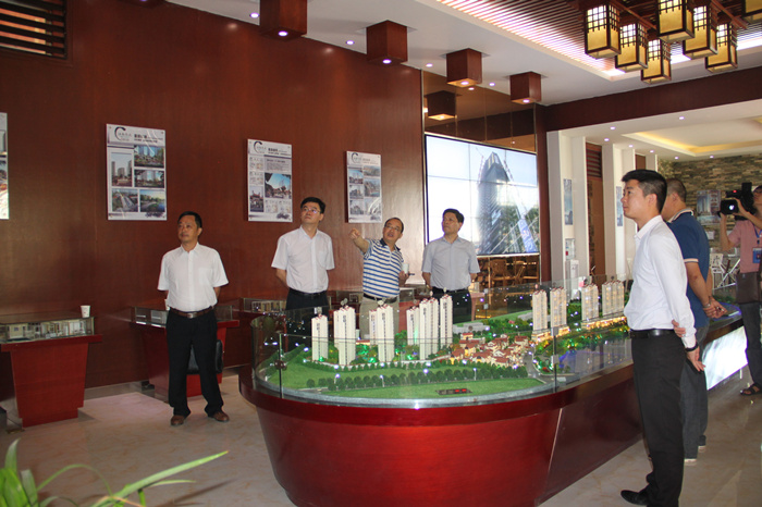 程董事長及董事長助理、投資事業(yè)部總經(jīng)理姚偉一行在湖南公司總經(jīng)理林江的陪同下首先來到了位于犀城廣場東北角的“江南熙元”售樓部。在仔細詢問了一期項目的產(chǎn)品類別及銷售進度等情況后,董事長指出,在縣級城市開發(fā)樓盤一定要結(jié)合當(dāng)?shù)貙嵡?,為客戶提供滿意的產(chǎn)品,同時樹立行業(yè)的標(biāo)桿。