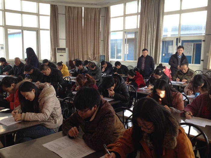 考試時間定于2014年12月13日下午14:00-16:30,考慮到地域分布因素,集團(tuán)總部設(shè)置了四、五樓兩個考場,主要為總部、湖北公司及所轄項目部會計人員考試提供場地,其他區(qū)域公司、地產(chǎn)子公司、專業(yè)子公司也在本單位會議室安排了考場??荚嚥扇¢]卷形式,并通過現(xiàn)場監(jiān)考人員備案、遠(yuǎn)程視頻監(jiān)考、考卷A、B分類、考前發(fā)放試卷至監(jiān)考人等方式,確保了本次活動的公開、公平與真實。