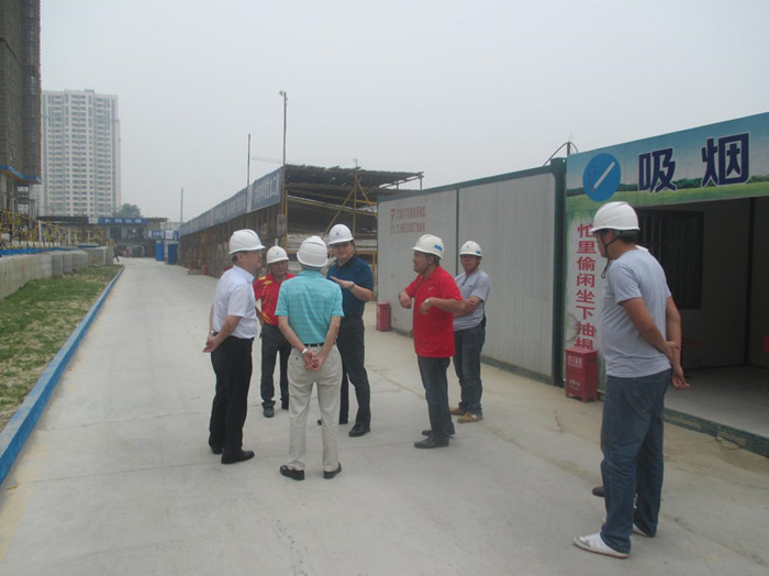 在河南公司總經(jīng)理馬文敏、副總經(jīng)理劉軍的陪同下,龔總一行首先考察了河南在建項(xiàng)目萬科城U63-02地塊二期的施工現(xiàn)場(chǎng),著重了解了現(xiàn)場(chǎng)工人的生活及工作情況后,對(duì)該項(xiàng)目的安全文明施工情況給予了高度肯定,并針對(duì)現(xiàn)場(chǎng)的外架和洞口、臨邊防護(hù)等重大安全事項(xiàng)提出了寶貴的指導(dǎo)意見,要求做到零事故施工工地的目標(biāo)。