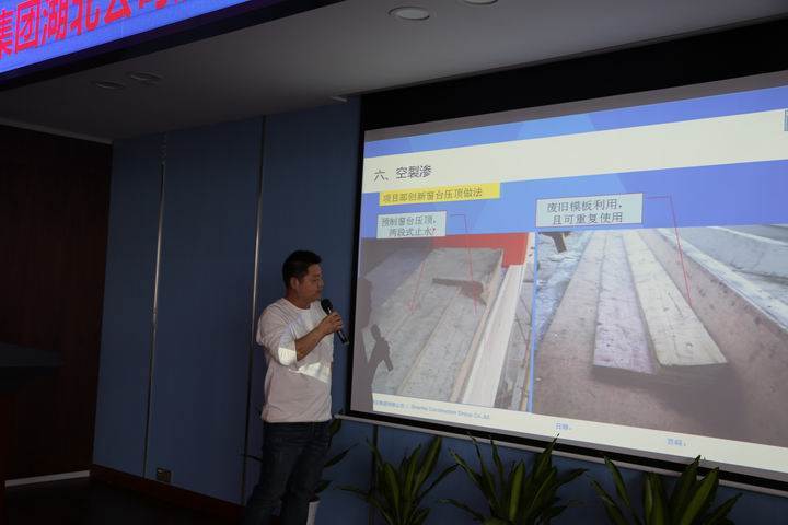 本次培訓(xùn)共設(shè)主會(huì)場(chǎng)1個(gè),分會(huì)場(chǎng)一個(gè)(襄陽(yáng)),共計(jì)150余人參加培訓(xùn),培訓(xùn)主要分為三個(gè)環(huán)節(jié):第一,質(zhì)量通病防治基本知識(shí)講述;第二,典型項(xiàng)目部經(jīng)驗(yàn)交流發(fā)言;第三,各項(xiàng)目部參會(huì)代表自由發(fā)言。會(huì)議由工程部經(jīng)理陳敬章主持。
