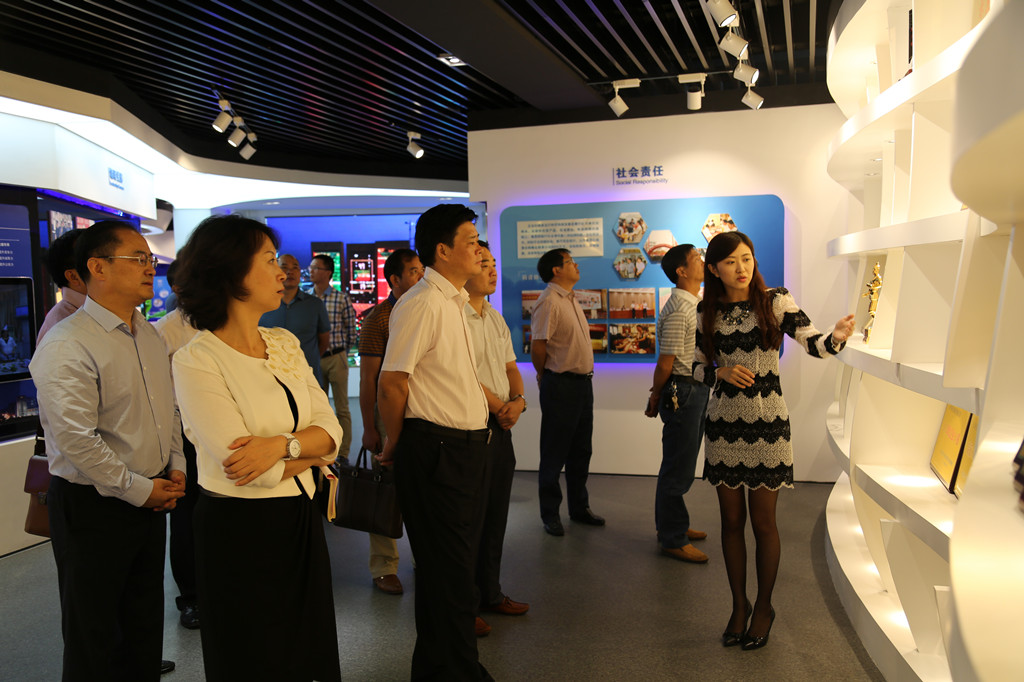 彭新軍一行領(lǐng)導(dǎo)首先參觀了企業(yè)展示中心,對山河集團(tuán)的發(fā)展歷程、代表工程、企業(yè)榮譽、企業(yè)文化進(jìn)行了全面系統(tǒng)的了解。