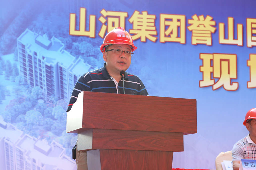 隨后,山河集團(tuán)廣東公司總經(jīng)理李新軍上臺(tái)致辭。他首先向出席現(xiàn)場(chǎng)會(huì)的區(qū)建設(shè)局領(lǐng)導(dǎo)、主管部門領(lǐng)導(dǎo)以及業(yè)界同仁表示衷心的感謝。在致辭中,李總強(qiáng)調(diào),山河集團(tuán)譽(yù)山國(guó)際項(xiàng)目成功召開現(xiàn)場(chǎng)觀摩會(huì),得益于各級(jí)主管部門、各位領(lǐng)導(dǎo)對(duì)山河集團(tuán)項(xiàng)目管理實(shí)踐工作的充分支持和信任。他表示,山河集團(tuán)將強(qiáng)化安全生產(chǎn)基礎(chǔ),大力實(shí)施綠色節(jié)能科技,為提升增城區(qū)建筑市場(chǎng)施工水平做出應(yīng)有貢獻(xiàn)。