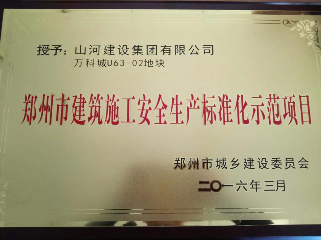 近日,山河集團(tuán)萬(wàn)科城U63-02地塊在河南省鄭州市“2015年度文明工地”評(píng)選活動(dòng)中,獲評(píng)鄭州市城鄉(xiāng)建設(shè)委員會(huì)授予的“鄭州市建筑施工安全生產(chǎn)標(biāo)準(zhǔn)化示范項(xiàng)目”榮譽(yù)稱號(hào)。