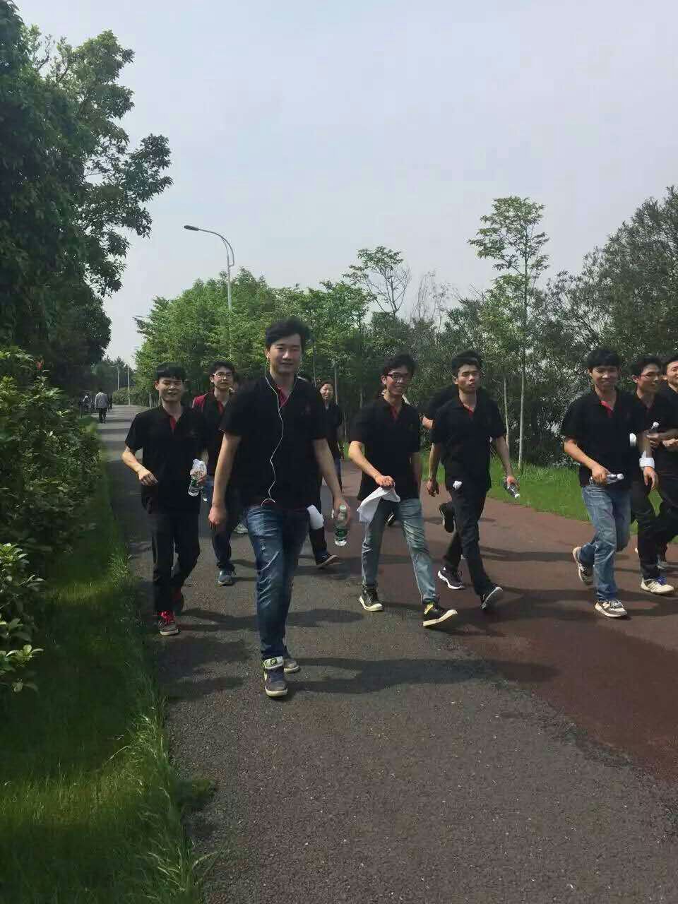 上午9點(diǎn)整,15支隊(duì)伍在總經(jīng)理熊善杰的帶領(lǐng)下,服裝統(tǒng)一、精神抖擻的從起點(diǎn)準(zhǔn)時(shí)出發(fā)。一路下來,隊(duì)伍中女同事們體力明顯有些疲憊,原本輕快的步伐也漸漸變得沉重起來,沿途的志愿者紛紛為大家能量補(bǔ)給、加油打氣,隊(duì)友們也你追我趕、互相鼓勵(lì),腳步始終追隨著山河旗幟不言放棄。
