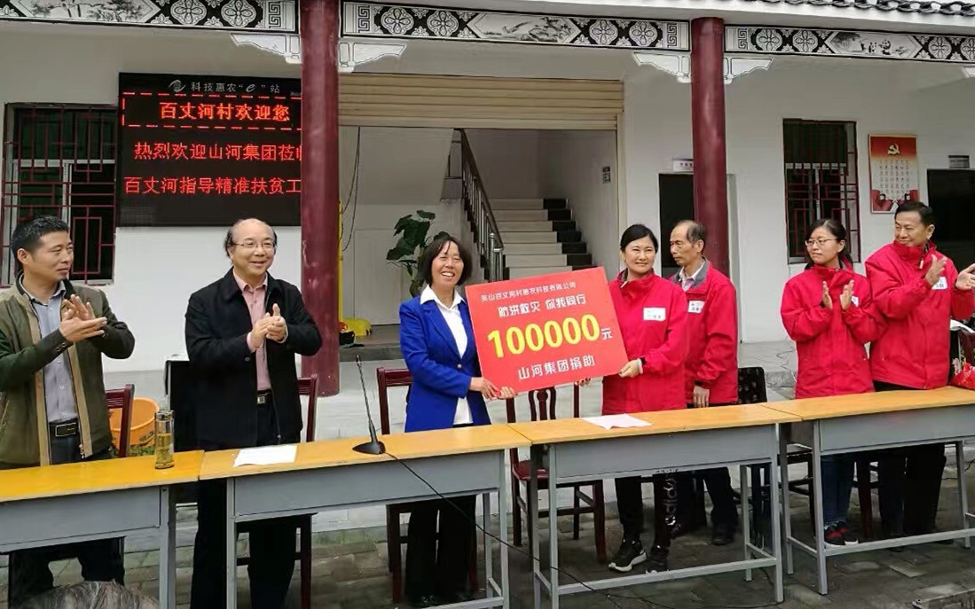 2013年,為更好落實(shí)湖北“千企幫千村、脫貧奔小康”活動(dòng),山河集團(tuán)董事長程理財(cái)一行來到百丈河村實(shí)地調(diào)研,并出資為百丈河村安裝20余盞太陽能路燈,參與修建村委會(huì)辦公大樓,改善了全村村民的生產(chǎn)和生活環(huán)境,為百丈河村安置就業(yè)30人。