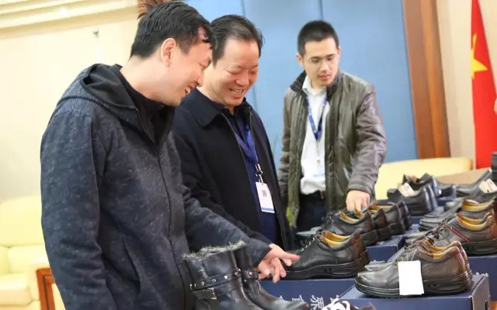 下午2:30,一雙雙從廠家拖來的樣品鞋,整齊有序地擺放著。