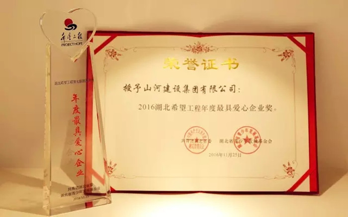 11月25日晚,由共青團(tuán)湖北省委、省青基會(huì)主辦的“湖北希望工程第七屆慈善盛典”在湖北省奧體中心舉行。山河集團(tuán)受邀參加此次盛典,并獲頒2016湖北希望工程“年度最具愛心企業(yè)獎(jiǎng)”。