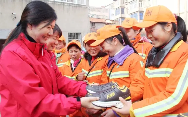 現(xiàn)場領(lǐng)到旅游鞋的環(huán)衛(wèi)工人,每天早晨4點(diǎn)多就要起床去上班,即使多穿一些,清晨刺骨的寒風(fēng)也讓人十分難受,山河集團(tuán)給送來的一雙雙鞋子,不僅讓她們感受到了社會(huì)對環(huán)衛(wèi)工人的關(guān)愛和尊重,更讓她們感到溫暖和幸福。