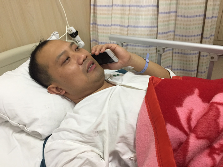 病床上的劉軍處理著工地事務