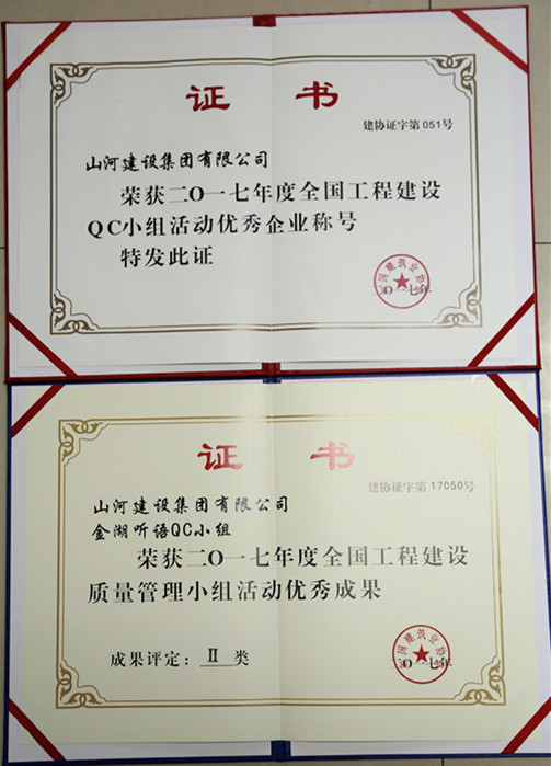 2017年全國工程建設(shè)優(yōu)秀QC小組活動成果交流會第二場于今年7月1日-3日在四川成都舉行,經(jīng)過中國建筑業(yè)協(xié)會工程建設(shè)質(zhì)量管理分會和專家的評審,山河集團湖北公司參與發(fā)布交流的金湖聽雨項目的“提高外墻內(nèi)保溫薄塊驗收合格率”榮獲2017年度全國工程建設(shè)質(zhì)量管理小組活動優(yōu)秀成果(成果評定為二類)。與此同時,山河建設(shè)集團有限公司被授予2017年度全國工程建設(shè)QC小組活動優(yōu)秀企業(yè)稱號。