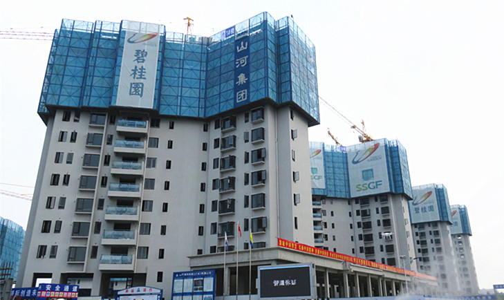 石碣碧桂園紫辰花園項目,由山河集團廣東公司2016年承接,2017年開工。該項目分為一期、二期工程。一期工程1-6號為商業(yè)、住宅樓,7-30號為別墅、地下室,其中1#、2#、6#為雙拼建筑,總建筑面積130830平米;二期工程1-10號為住宅樓,全部為單體建筑,總建筑面積127167平米。一、二期工程同時開工,工期緊,體量大。