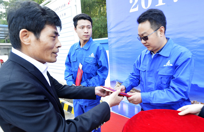 集團(tuán)副總裁、湖北公司總經(jīng)理許金華給獲獎(jiǎng)?wù)哳C獎(jiǎng)