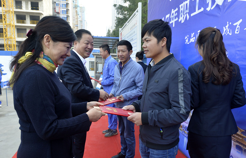 10月20日,由山河集團(tuán)工會(huì)和集團(tuán)湖北公司主辦的“2017年職工技能大賽總決賽”表彰大會(huì)在余家頭K3項(xiàng)目部舉行。集團(tuán)副總裁、湖北公司總經(jīng)理許金華,集團(tuán)副總裁兼總工程師程秋明,集團(tuán)黨委副書記、工會(huì)主席張玉瓊等領(lǐng)導(dǎo);湖北公司常務(wù)副總經(jīng)理詹必強(qiáng),各參賽項(xiàng)目部獲獎(jiǎng)代表共140人參加頒獎(jiǎng)儀式。頒獎(jiǎng)儀式由湖北公司工程技術(shù)部經(jīng)理王爾主持。