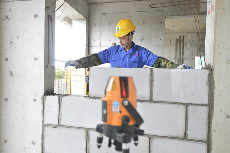砌筑工用激光儀測(cè)量