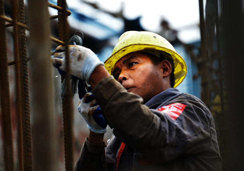 鋼筋工“馴服”鋼筋構(gòu)件