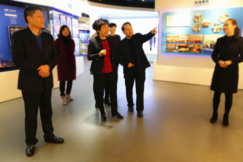 在企業(yè)展示中心,董事長(zhǎng)程理財(cái)向劉主席一行匯報(bào)了集團(tuán)發(fā)展戰(zhàn)略、生產(chǎn)經(jīng)營(yíng)、產(chǎn)業(yè)規(guī)劃和社會(huì)公益事業(yè)等方面情況。在企業(yè)文化展板前,劉主席被集團(tuán)一路奮進(jìn)的發(fā)展歷史和艱苦奮斗的創(chuàng)業(yè)精神所感動(dòng),連連點(diǎn)贊;對(duì)集團(tuán)在打造區(qū)域發(fā)展戰(zhàn)略,拓展市場(chǎng)空間,鑄造精品工程,提升品牌形象,履行企業(yè)社會(huì)職責(zé)等內(nèi)容,給予充分肯定。