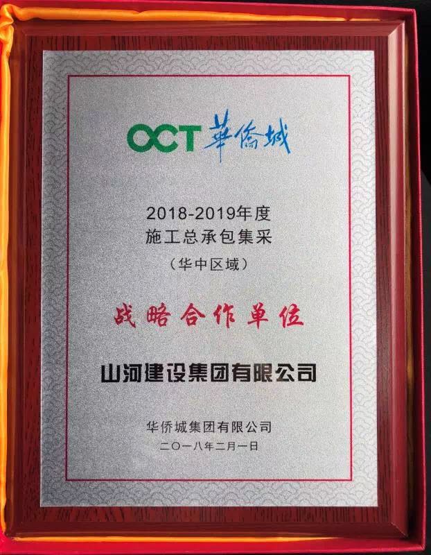 4月26日,山河建設(shè)集團(tuán)被華僑城集團(tuán)授予戰(zhàn)略合作單位稱號。目前,在湖北、河南、江西三省的華中地區(qū),被華僑城集團(tuán)授予戰(zhàn)略合作單位的僅三家,山河建設(shè)集團(tuán)位列其中。