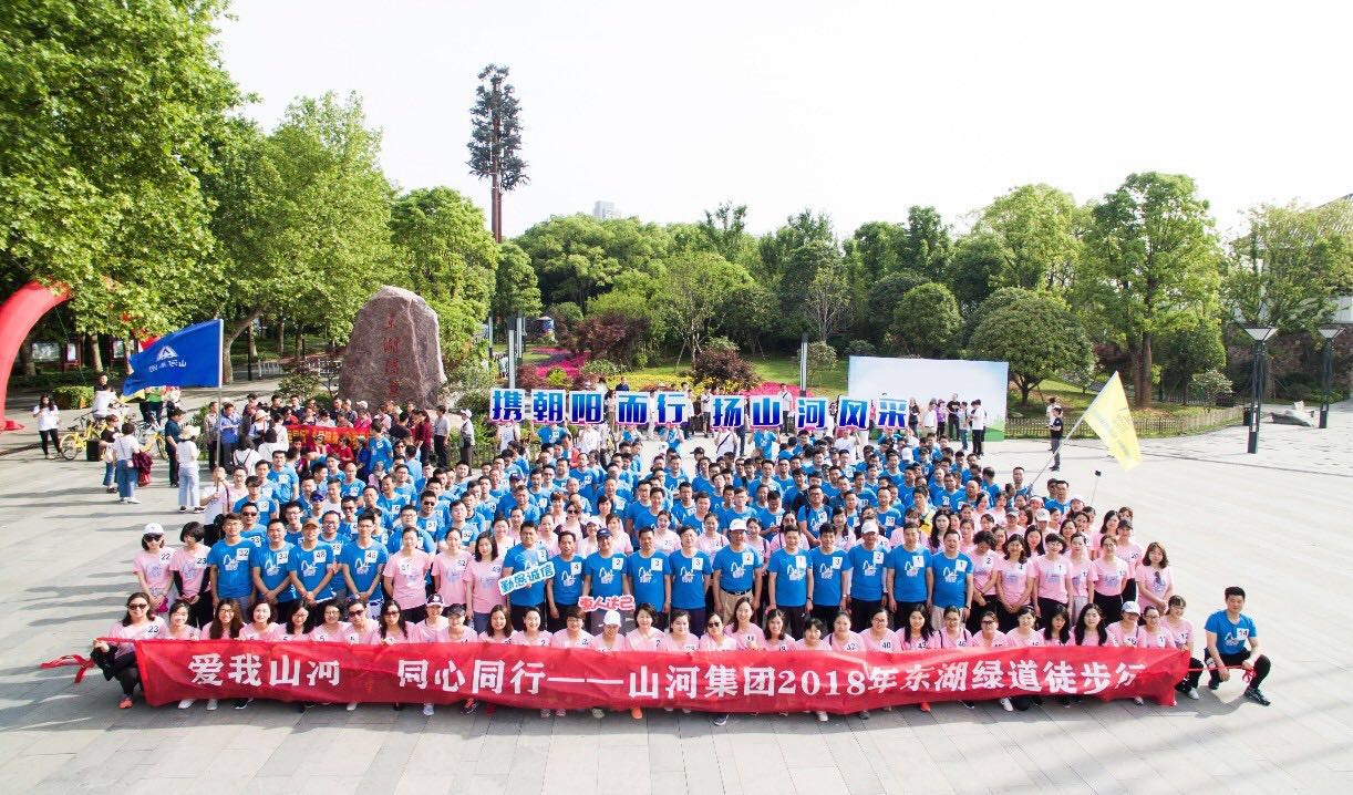 5月4日,青年節(jié)這天,山河健兒們整裝待發(fā),熱情昂揚的迎來了“愛我山河 同心同行”2018年東湖綠道徒步行活動?;顒佑缮胶蛹瘓F黨委、工會組織,來自集團總部、建設(shè)集團、地產(chǎn)集團、湖北區(qū)域公司、在漢子公司等400余名選手在主會場參加了徒步比賽。