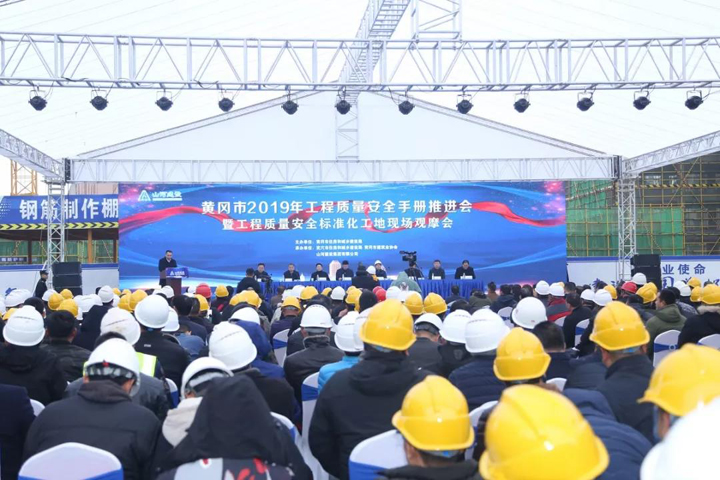 湖北省建設(shè)工程質(zhì)量安全監(jiān)督總站、黃岡市住建局、武穴市政府、黃岡市所轄縣市區(qū)住建局、建筑業(yè)協(xié)會(huì)領(lǐng)導(dǎo)及黃岡地區(qū)在建工程施工單位代表共計(jì)700余人參加了此次活動(dòng)。