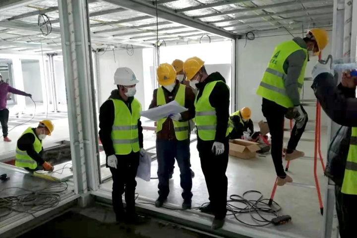 2月2日,武漢雷神山醫(yī)院建設(shè)項目指揮部發(fā)來緊急任務(wù):需要支援安裝雷神山醫(yī)院“醫(yī)療隔離區(qū)”集裝箱隔斷工人。山河集團接到消息后,火速集結(jié)人力和物資,20余名管理人員和專業(yè)技術(shù)工人立即奔赴雷神山。
