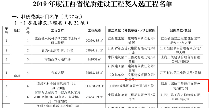 近日,從江西省住房和城鄉(xiāng)建設(shè)廳獲悉,山河建設(shè)集團(tuán)江西公司承建的南昌萬科金域國際項目13#、19#-22#樓榮獲2019年度江西省優(yōu)質(zhì)建設(shè)工程“杜鵑花獎”。