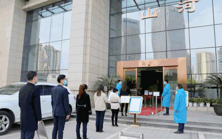 為了迎接這一天的到來,山河集團(tuán)旗下的武漢市山河廣昌盈物業(yè)管理有限公司提前進(jìn)入“備戰(zhàn)狀態(tài)”,嚴(yán)格執(zhí)行政府頒布的復(fù)工、復(fù)產(chǎn)指導(dǎo)要求,提前落實(shí)“防控機(jī)制到位、員工排查到位、設(shè)施物資到位、環(huán)境消殺到位、安全生產(chǎn)到位”的“五個(gè)到位”措施,開啟多項(xiàng)“硬核”防疫舉措。