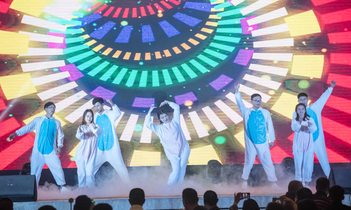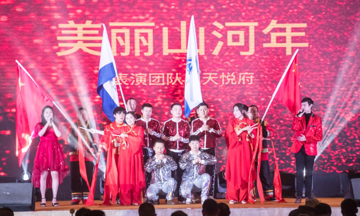 晚宴環(huán)節(jié),精彩紛呈的文藝節(jié)目與激動人心的抽獎活動交替進行,現(xiàn)場一派歡樂祥和的氣氛。熱鬧喜慶的《美麗山河年》開啟新年新篇,情意綿綿的《新白蛇傳》讓來賓贊不絕口,西南女團的勁歌熱舞令觀眾大飽眼福,飽含深情的《歌唱祖國》表達了對祖國母親的無限敬意……