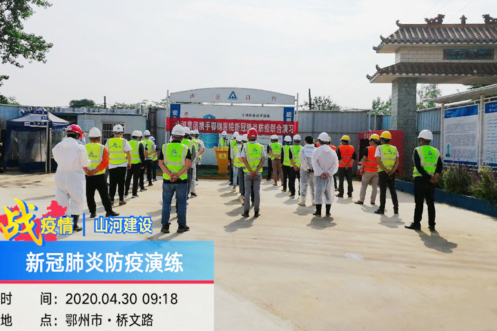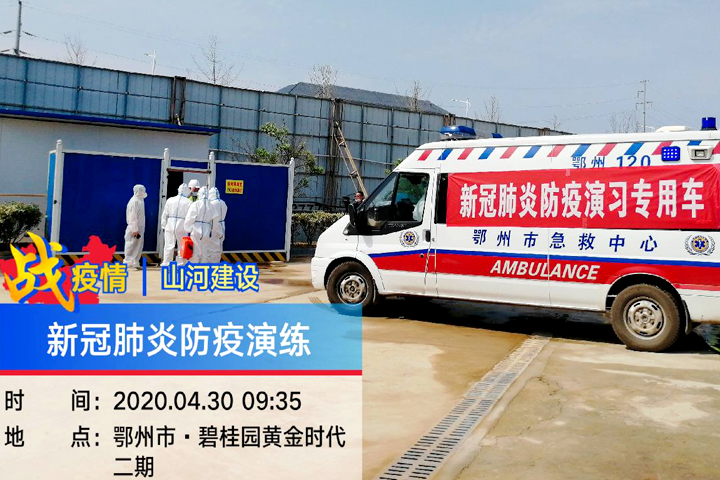 4月30日,山河建設(shè)集團(tuán)項目管理公司承建的鄂州碧桂園黃金時代項目施工現(xiàn)場,集團(tuán)攜手鄂鋼醫(yī)院開展的新冠肺炎防疫聯(lián)合演習(xí)在這里進(jìn)行。