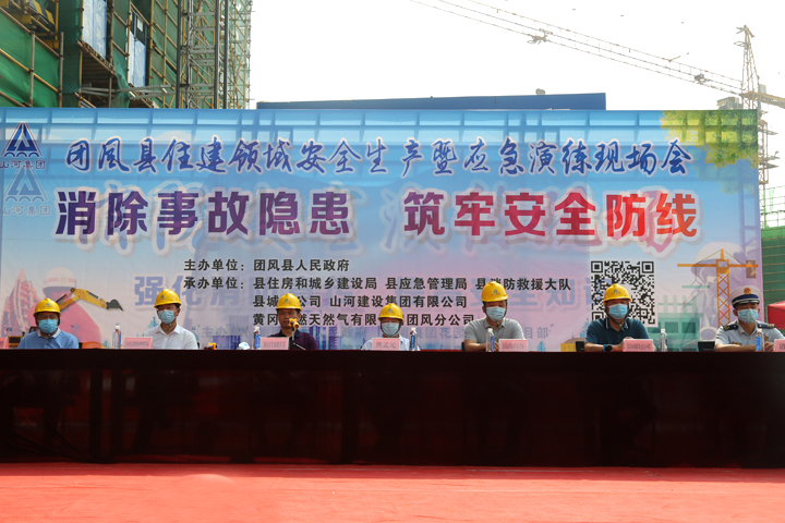 7月1日,團(tuán)風(fēng)縣住建領(lǐng)域安全生產(chǎn)暨應(yīng)急演練現(xiàn)場(chǎng)會(huì)在山河建設(shè)集團(tuán)項(xiàng)目管理公司承建的團(tuán)風(fēng)縣花園鋪棚改項(xiàng)目施工現(xiàn)場(chǎng)舉行,團(tuán)風(fēng)縣人民政府副縣長(zhǎng)熊孟元等領(lǐng)導(dǎo)出席,活動(dòng)由縣住建局局長(zhǎng)龍紅兵主持。