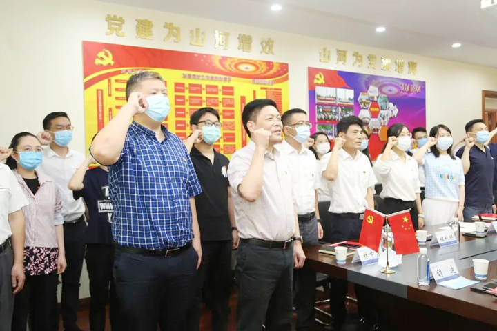 山河集團黨委書記、董事長程理財帶領全體黨員重溫入黨誓詞,集團總部機關黨支部黨員潘蕾領學《黨章》,省檢察院第八檢察部黨支部黨員劉洋帶領大家共同學習了鄂檢“新十條”、《關于充分發(fā)揮檢察職能依法保障復工復產促進經濟社會加快發(fā)展的意見》。