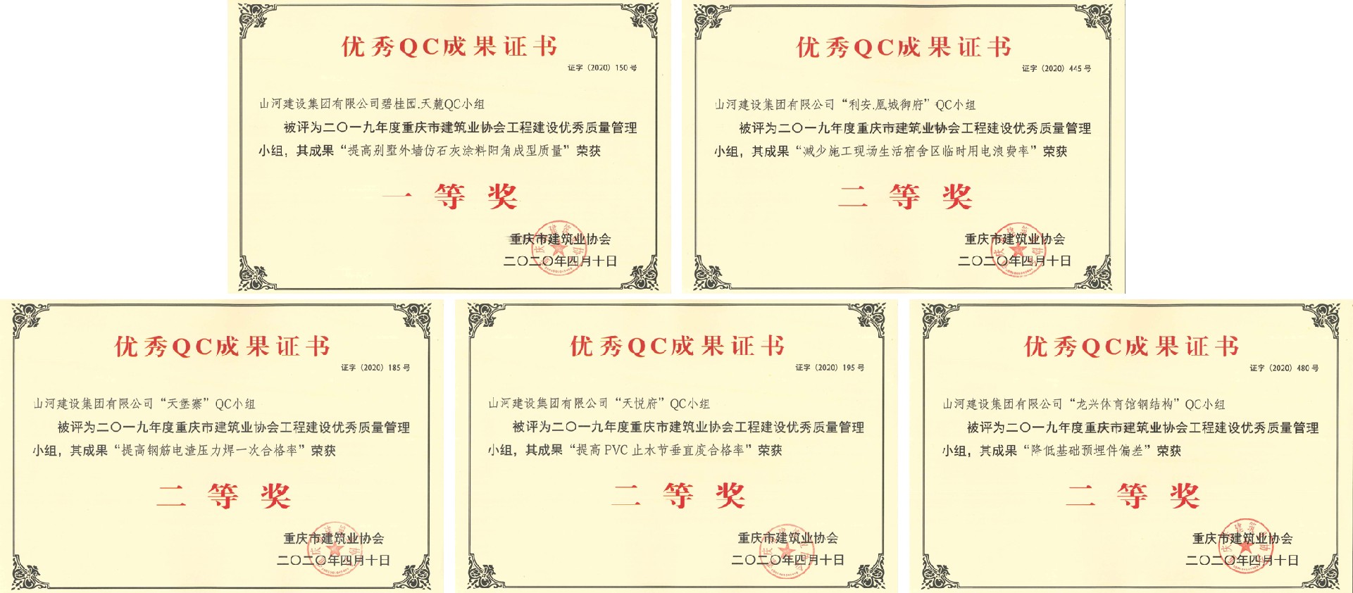 從重慶市建筑業(yè)協(xié)會獲悉,在2019年度工程建設優(yōu)秀質(zhì)量管理小組評審活動中,山河建設集團西南公司5項QC成果被評為優(yōu)秀QC成果,其中一等獎1項、二等獎4項。