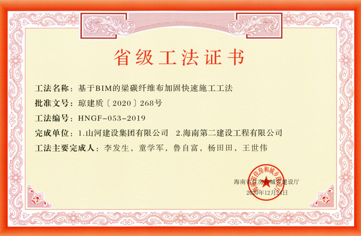 近日,海南省住房和城鄉(xiāng)建設(shè)廳公布了《2019年度海南省工程建設(shè)工法名單》,山河建設(shè)集團(tuán)海南公司申報(bào)的《基于BIM的梁碳纖維布加固快速施工工法》成功獲評(píng)。