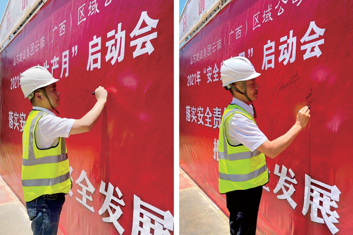 啟動(dòng)儀式上,全體人員莊嚴(yán)宣誓,大聲說出“告別違章從我做起”的誓詞,一字一句鏗鏘有力,表達(dá)了抓好安全生產(chǎn)的信心和決心。隨后,大家在啟動(dòng)儀式背景墻上簽名,承諾切實(shí)履行安全生產(chǎn)主體責(zé)任,把責(zé)任記在心上,扛在肩上,落實(shí)在行動(dòng)上。