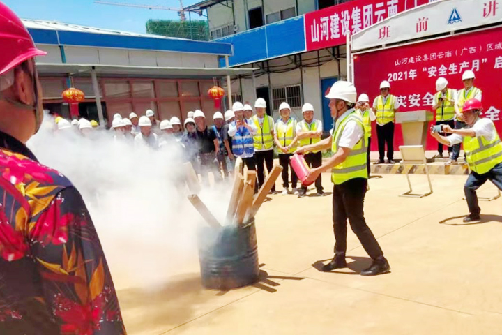 5月29日,山河集團(tuán)正式啟動(dòng)2021年“安全生產(chǎn)月”活動(dòng)。云南(廣西)公司迅速響應(yīng),于當(dāng)日下午在昆明龍四地塊城市棚戶區(qū)改造項(xiàng)目施工現(xiàn)場舉行了2021年“安全生產(chǎn)月”活動(dòng)啟動(dòng)儀式。公司副總經(jīng)理劉火焱、秦大順,工程團(tuán)隊(duì)全體人員,各項(xiàng)目部代表等150余人參加了啟動(dòng)儀式。