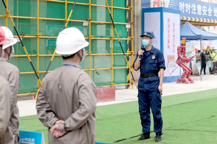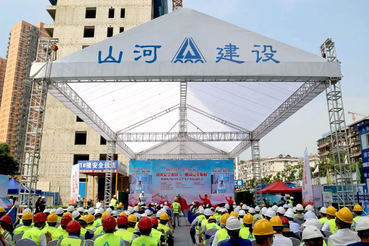 6月2日,武漢市洪山區(qū)2021年“安全生產(chǎn)月”啟動儀式暨建筑施工應急救援演練活動在山河建設集團總承包公司承建的朗詩·熙華府項目施工現(xiàn)場舉行。洪山區(qū)政府黨組成員牛正可,區(qū)應急管理局局長金昆玲,區(qū)建設局、消防救援大隊、和平街道辦事處、建筑管理站等單位領導出席啟動儀式,區(qū)發(fā)改局、城管執(zhí)法局、衛(wèi)生健康局、科技和經(jīng)信局、商務局等近60家單位代表,建設單位、監(jiān)理單位代表,總承包公司工程團隊及在建項目代表等300余人參加了活動。洪山區(qū)建管站站長錢偉主持啟動儀式。