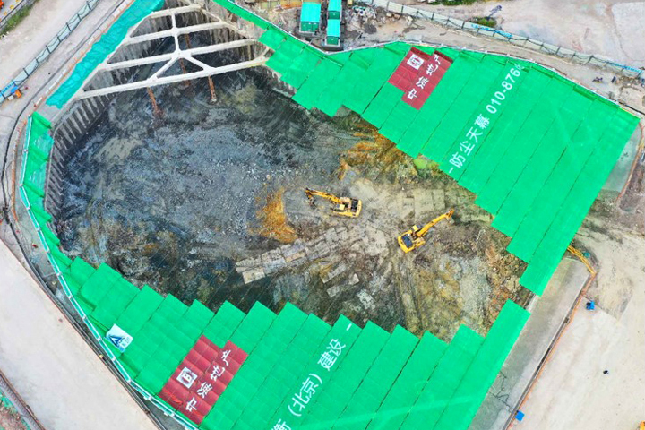 “天幕”采用阻燃材料,減少了消防安全隱患,同時通過科學(xué)的標(biāo)高設(shè)計(jì),既不耽誤施工作業(yè),又可回收循環(huán)使用,規(guī)避了常規(guī)防塵網(wǎng)污染土壤、頻繁更換、影響施工、耗費(fèi)人力物力等弊端,為綠色施工、智慧建造提供了新的路徑。