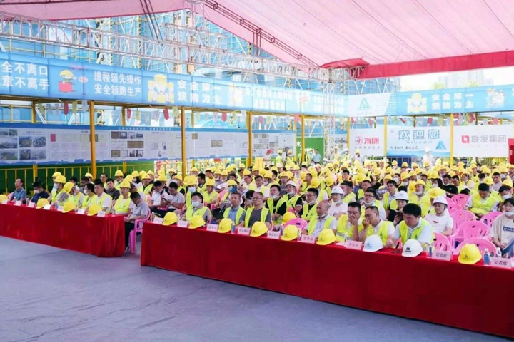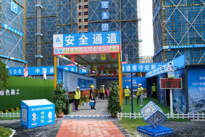 隨后,與會(huì)代表前往安全體驗(yàn)區(qū)、工法樣板區(qū)、主體樓棟、實(shí)測(cè)實(shí)量展示區(qū)、安全管理展示區(qū)、施工機(jī)具展示區(qū)進(jìn)行參觀,對(duì)施工現(xiàn)場(chǎng)的安全文明標(biāo)準(zhǔn)化建設(shè)、基坑防護(hù)欄、噴淋降塵系統(tǒng)等措施給予了充分肯定。
