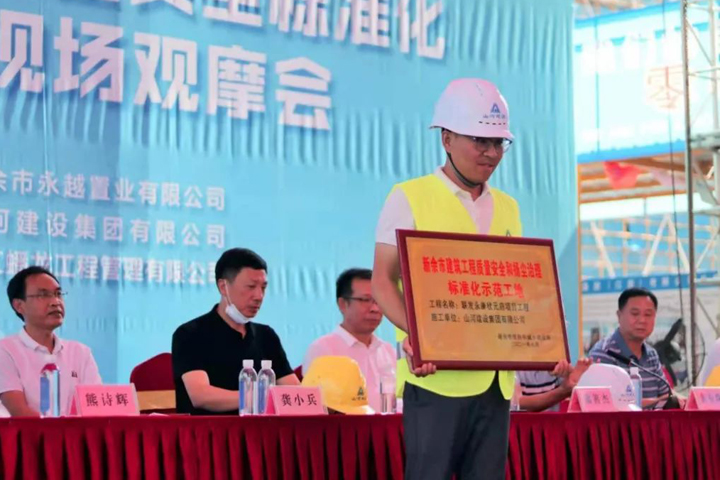7月29日,新余市2021年建設(shè)工程質(zhì)量安全標(biāo)準(zhǔn)化暨揚(yáng)塵治理示范工地現(xiàn)場(chǎng)觀摩會(huì)在山河建設(shè)集團(tuán)江西公司承建的聯(lián)發(fā)永康狀元府項(xiàng)目舉行。新余市住建局副局長(zhǎng)龔小兵、市建管局局長(zhǎng)何祝生、市質(zhì)監(jiān)站站長(zhǎng)龔宇新等領(lǐng)導(dǎo)出席活動(dòng),建設(shè)單位、監(jiān)理單位及新余市在建項(xiàng)目代表等400余人參加活動(dòng)。