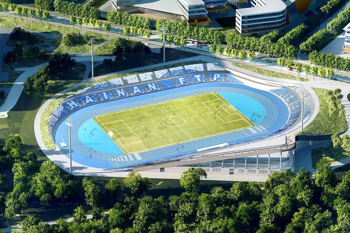 海南公司承建的試驗區(qū)體育場項目是園區(qū)的重要組成部分,總用地面積約5.48萬平方米,建筑面積5307平方米,采用裝配式施工。體育場建筑層數(shù)為地上二層,總高度24米,并新建室外運動場1座(含400米標(biāo)準(zhǔn)競賽場地22000平方米)。