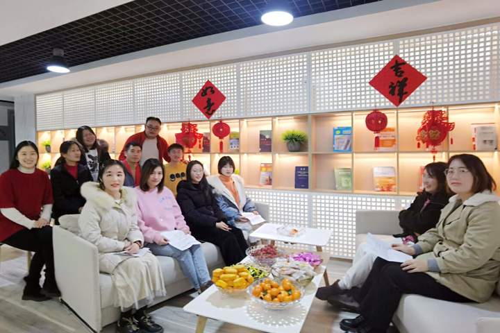 讀書分享是云南公司長期開展的一項文化活動,受到員工的歡迎和積極參與。為了凸顯新年的喜慶氛圍,公司閱讀區(qū)貼上“吉祥”“如意”、掛上中國結,部分員工特意穿上紅外套、戴上紅圍巾,表達著對新年的美好期盼。