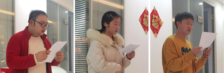 活動伊始,主持人將精心挑選的書籍送到員工手上,大家安安靜靜地品讀美文佳作。隨后,每個人結合所讀的內容及自身工作情況進行分享,交流心得體會,經過思想的碰撞,遇見更好的自己。分享結束后,舉行了元旦猜燈謎游戲,并向猜中謎底的員工送出精美禮品,也送上公司對大家的暖暖祝福。