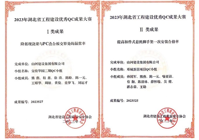 近日,湖北省建設(shè)工程質(zhì)量安全協(xié)會公布2023年湖北省工程建設(shè)優(yōu)秀QC成果大賽獲獎名單。山河建設(shè)集團(tuán)申報的2項成果入選,其中Ⅰ類成果1項、Ⅱ類成果1項。