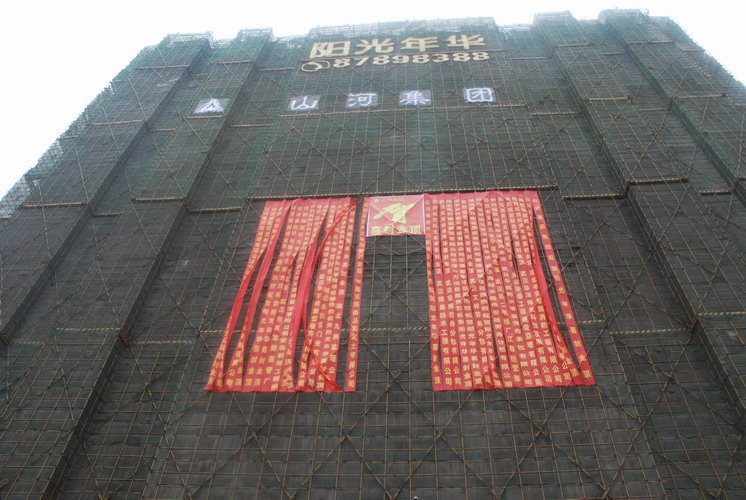 2008年7月18日由山河集團(tuán)項目經(jīng)理馮海堂承建的陽光年華工程喜封金頂。該工程位于中南一路48號,屬于綜合樓建筑面積35966O??蚣艚Y(jié)構(gòu),地上32層;建設(shè)單位:湖北陽光世紀(jì)置業(yè)有限公司;設(shè)計單位:湖北天一建筑設(shè)計有限公司;監(jiān)理單位:湖北九洲監(jiān)理公司。