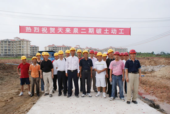 10月7日上午9時,瓊海官塘,艷陽高照。簡短而熱烈的開工儀式后,機器轟鳴,鞭炮齊響。由我公司承建的海南第一樓“瓊海天來泉度假中心二期”正式破土動工。
