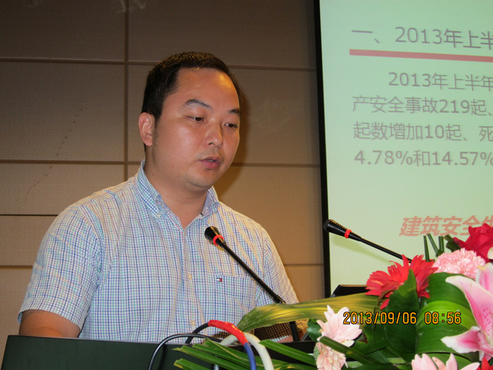 接著,湖北公司安全管理部經(jīng)理李志勇進(jìn)行工作匯報(bào),他分別從2013年上半年全國(guó)安全事故統(tǒng)計(jì)分析、模板支撐體系的管理、大型起重設(shè)備的管理、其他分部分項(xiàng)工程安全管理、文明施工管理及其他需要項(xiàng)目經(jīng)理關(guān)注事項(xiàng)等方面展開(kāi)。通過(guò)生動(dòng)的案例,找亮點(diǎn),尋不足,形象生動(dòng),引人思考。“無(wú)危則安,無(wú)損則全”,希望山河集團(tuán)的所有項(xiàng)目都能夠無(wú)危無(wú)損,安安全全!